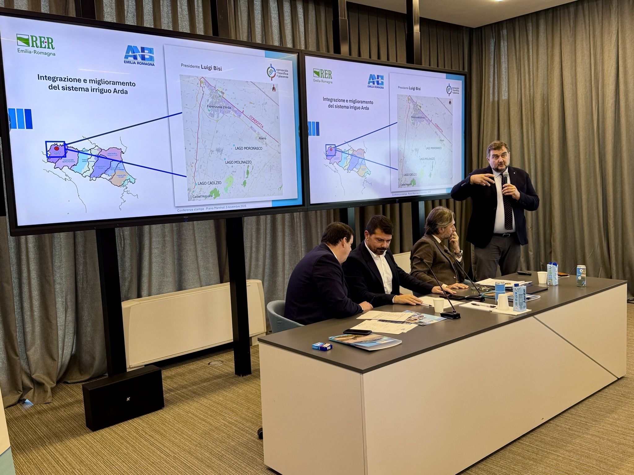Oltre a ciò, per il Consorzio di bonifica di Piacenza, tra gli interventi principali in fase di realizzazione con fondi europei, ministeriali e regionali per oltre 96 milioni di euro ci sono la ricostruzione del Traversante Mirafiori a Rivergaro, un impianto di sollevamento a Ronchi di Caorso, l'efficientamento della rete di distribuzione nella zona Tidone, la ristrutturazione funzionale del sistema di telecontrollo (gestione da remoto) di manufatti idraulici nel distretto Arda, un impianto idrovoro a Soarza (Villanova sull'Arda), interventi di difesa idraulica in pianura ed altri di prevenzione del dissesto idrogeologico sparsi sul territorio montano.